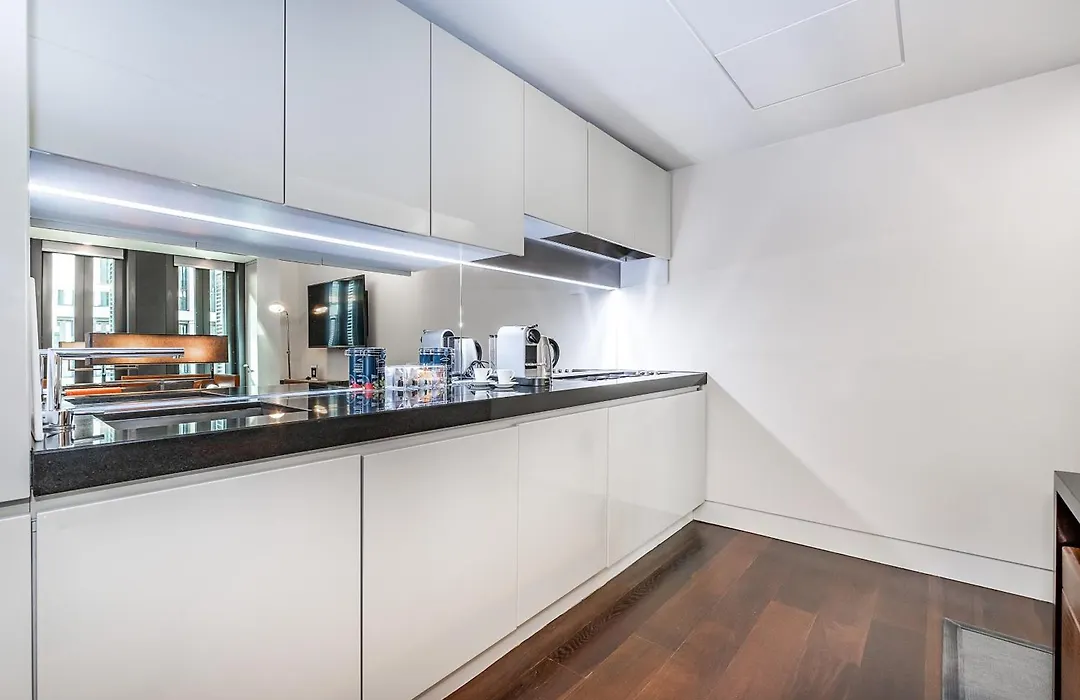 Rooms at Grosvenor House Suites include 130 units ranging from studios to five-bedroom apartments, all featuring chic designs, king-size beds, and high-end amenities like Nespresso machines and digital flat-screen TVs. Bathrooms are equipped with deep soaking tubs and separate rain showers.