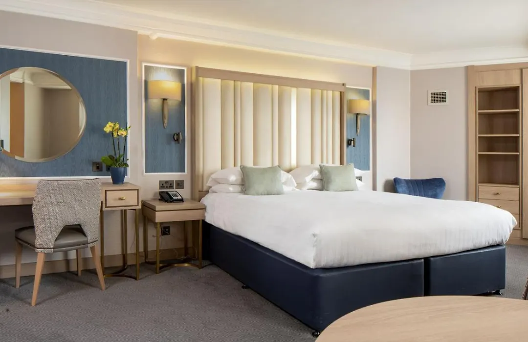 Rooms at Danubius Hotel Regents Park include various options such as Deluxe Rooms, Family Bedrooms, and the Master Suite with stunning views of Lord's Cricket Ground. Each room features a king-size bed, smart TV, and complimentary high-speed Wi-Fi. Guests can also enjoy luxury amenities like bathrobes and slippers upon upgrading.