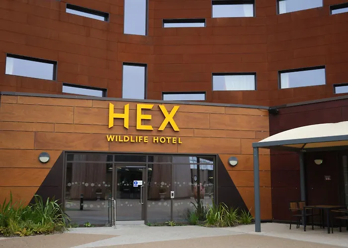Hex Wildlife Hotel At Yorkshire Wildlife Park offers a unique stay with views of wildlife and modern amenities. This 8.9/10 rated hotel features a restaurant, bar, and a sun terrace, alongside free WiFi and private parking.