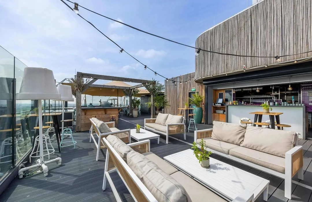 Leonardo Hotel Amsterdam Rembrandtpark is a 4-star hotel featuring a rooftop cocktail lounge, the Skybar, on the 18th floor. The hotel emphasizes sustainability, holding a Green Key Gold certificate for its eco-friendly initiatives. Guests can enjoy sweeping views of Amsterdam from its 85-meter high rooftop terrace.