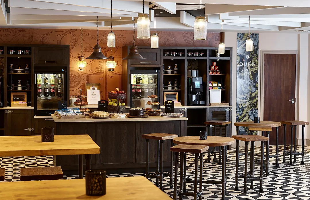 Dining options include The Grill restaurant, offering a diversity of seasonal dishes, and a bar serving light meals, specialty coffees, and snacks. The onsite restaurant can accommodate up to 200 diners, with alternate dining arrangements available based on guest occupancy.
