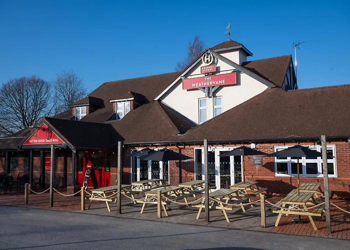 Weathervane Hotel By Greene King Inns is a 2-star Stoke-on-Trent hotel offering family-friendly accommodations with a lively bar and an outdoor sitting area. The property features free WiFi and a restaurant serving a variety of light lunches and full meals, including the Hungry Horse menu. Notable local attractions include Trentham Monkey Forest and Alton Towers Theme Park.