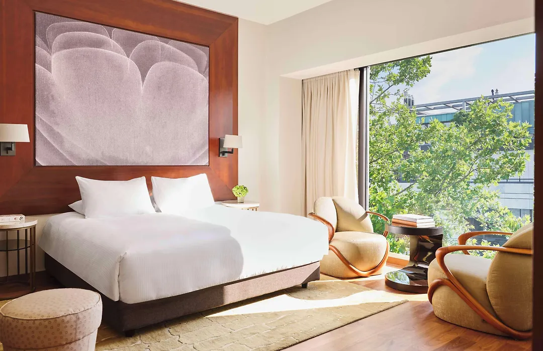 Elegant rooms and suites at Park Hyatt Zurich feature floor-to-ceiling windows offering city views, Italian linens on king-size beds, and marble bathrooms equipped with rain showers and bathtubs. Each accommodation includes free high-speed wired and WiFi internet access, as well as a Nespresso coffee machine for guest convenience. Luxurious touches such as fresh fruit and evening turn-down service enhance the overall guest experience.
