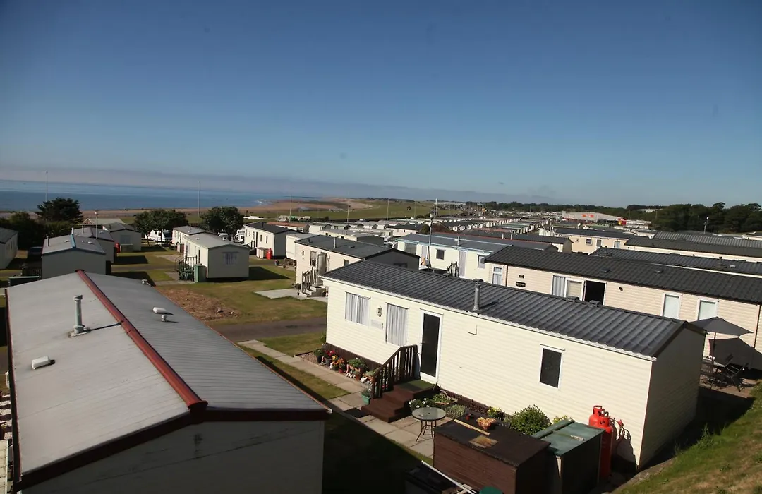 The Red Lion Holiday Park offers various mobile homes equipped with a fully equipped kitchen featuring a refrigerator, an oven, and a microwave. Accommodations include living areas, dining areas, outdoor furniture, and flat-screen TVs.