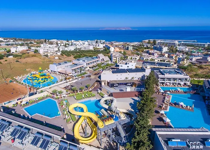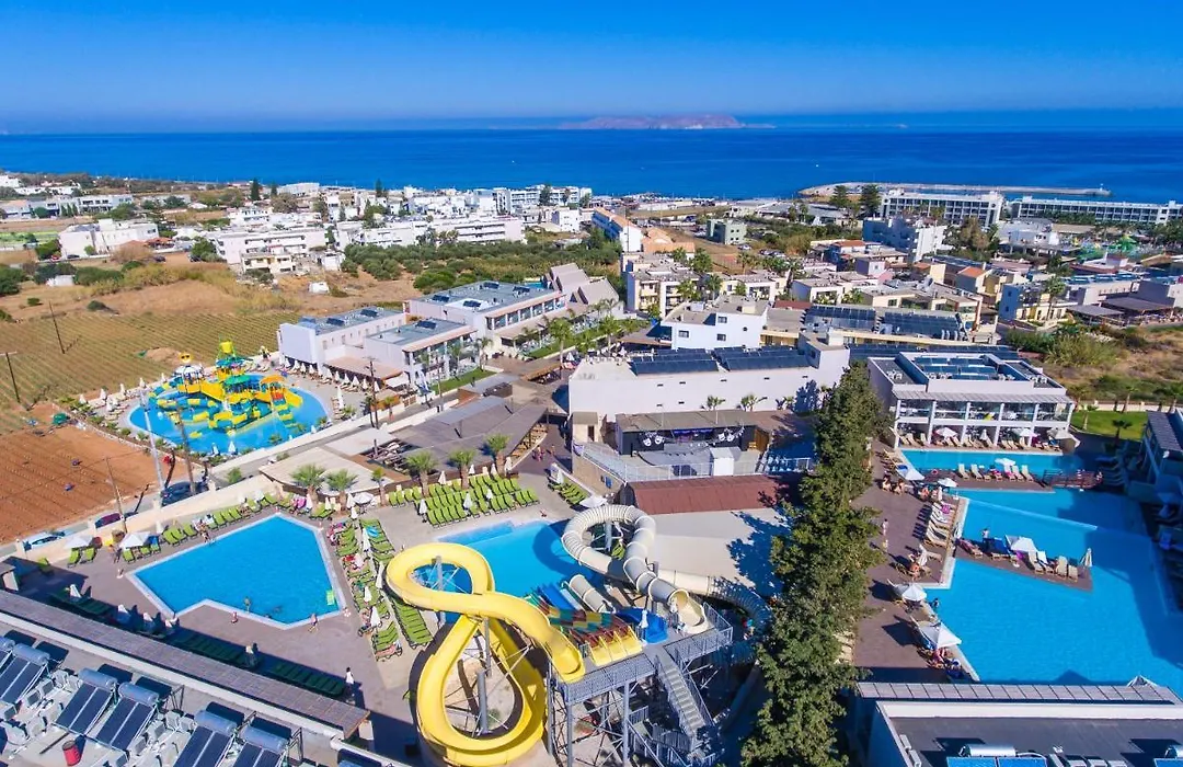 The resort features a vibrant water park with 6 slides and several swimming pools, including a mini water park for younger children. Gouves Waterpark Holiday Resort also offers a Kids Club and various daily entertainment programs that ensure fun for guests of all ages.